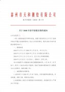 致广大客户、各合作单位与各界朋友: 因公司业务发展需要,经工商部门核准,泰州市天和测绘有限公司自2019年5月7日变更登记为江苏天和地理信息有限公司。税号、开户银行及账号不...